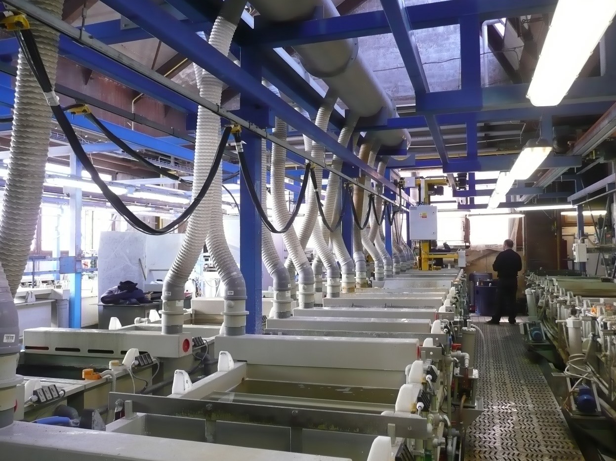 Dodávky včetně jednotlivých komponentů jako jsou např.: ▸ Vany (PP, PVDF, PVC, ocelové nebo z korozivzdorné oceli) ▸ Manipulátory ▸ Čerpadla a filtrační aparáty ▸ Podpěrná a elektrovodná lůžka ▸ Systémy pro chlazení a topení lázní včetně regulací (topné baterie, registry, výměníky, apod.) ▸ Ocelové konstrukce ▸ Potrubní rozvody ▸ Střídavá a stejnosměrná elektroinstalace ▸ Elektro rozvaděče a stejnosměrné zdroje