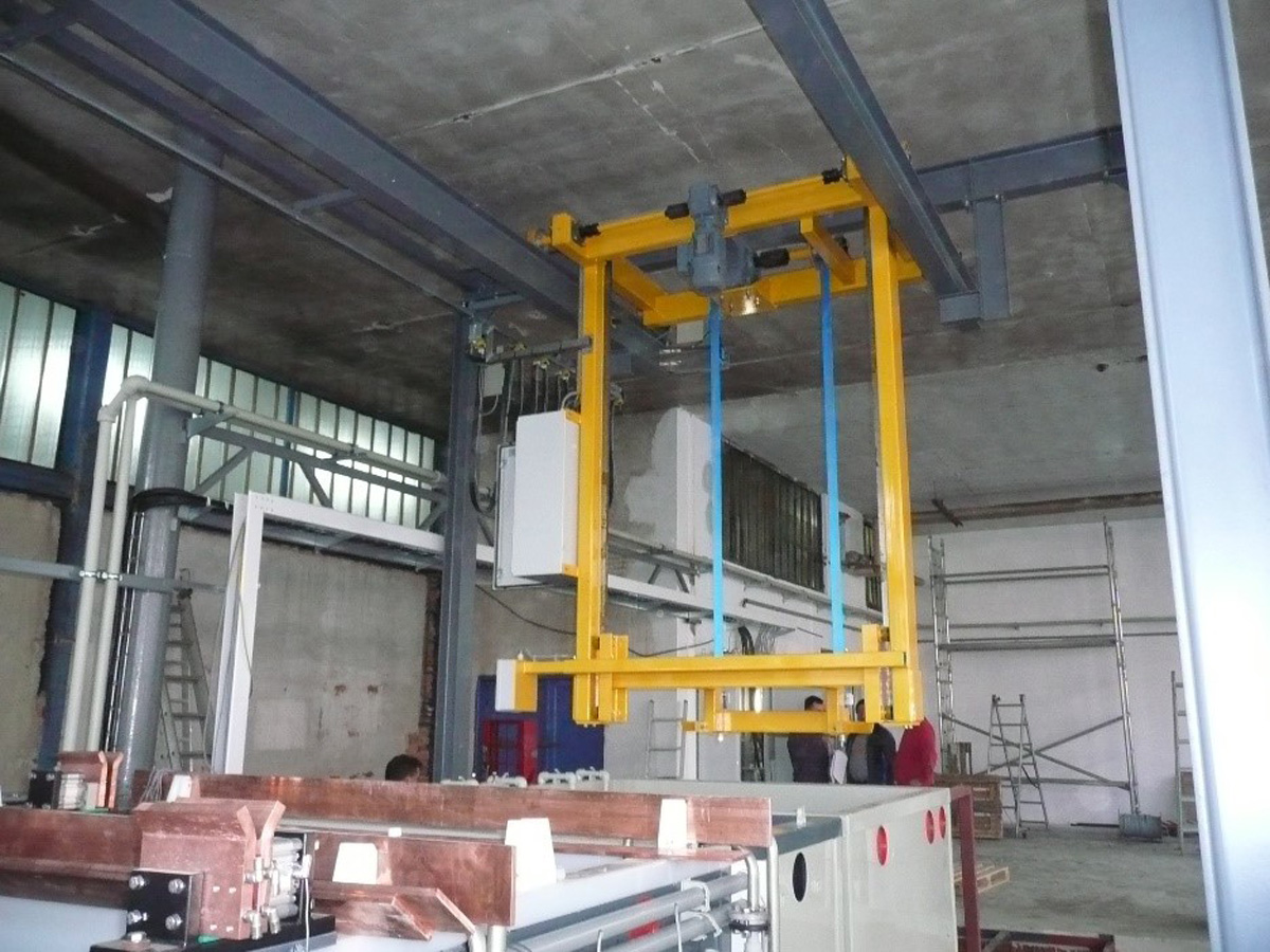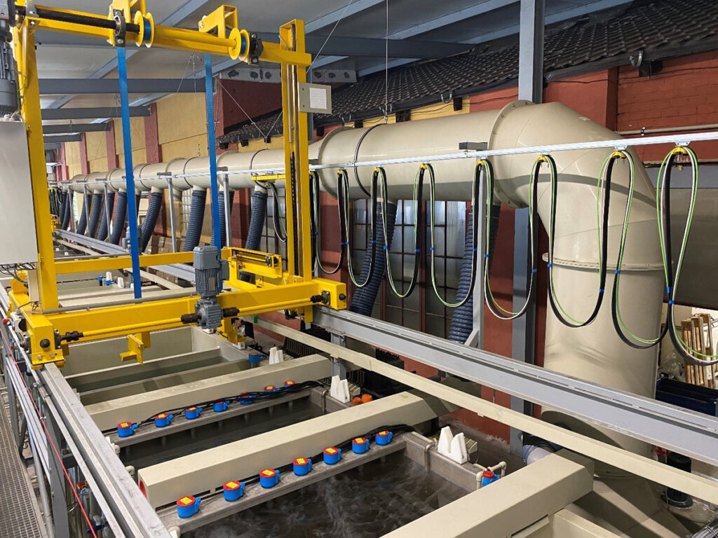 Automatická jednořadá linka pro galvanické niklování nerezových dílců za závěsu